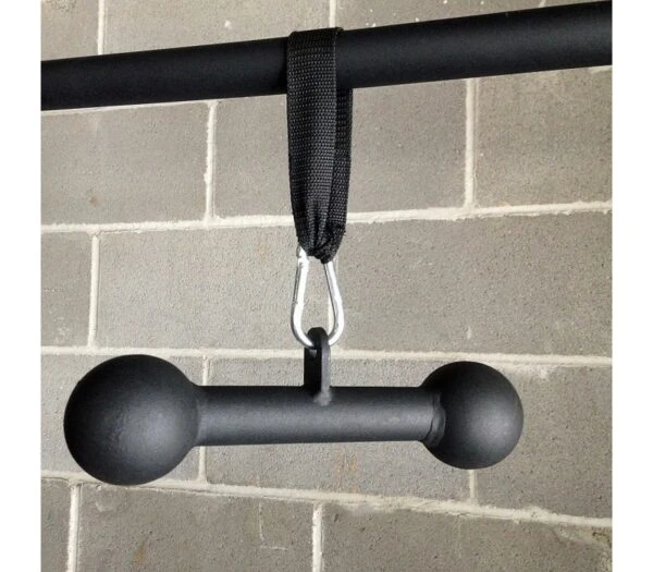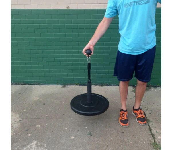 Load any 2″ Olympic Size Plate or Bumper onto the pin for weight. Then add either the light bulb grip, pipe bomb, or dog bone depending on what you want to hold onto.