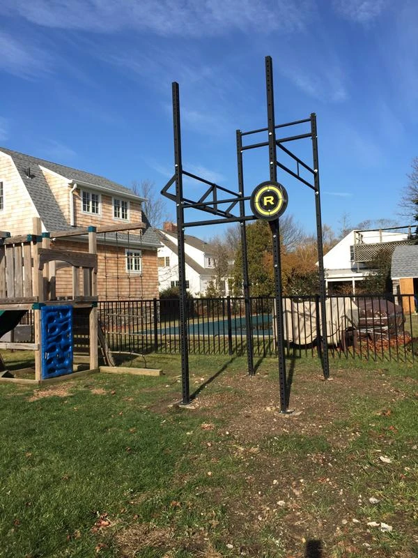 The little brother to our larger Infinity Rig, this rig can do it all in your own back yard: squats, rope climbs, ring work, pull-ups, wall balls. The durable Powder coat finish is weather resistant and can be stored outdoors year round.